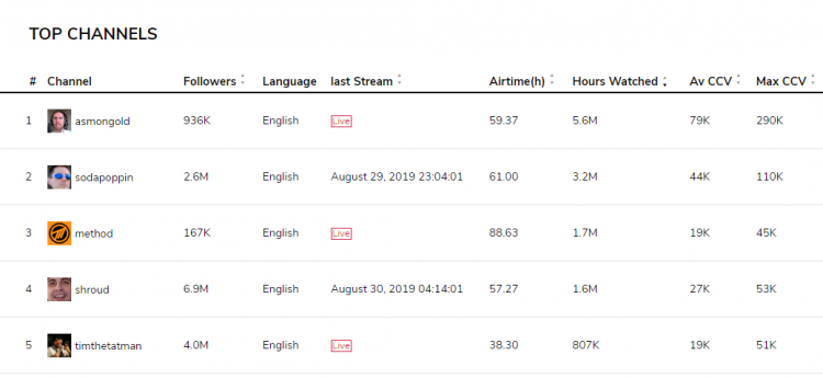 Ağustos ayından önce, bir haftada 30 milyondan fazla saat üretmeyi başaran tek başlık, EA adlı savaş royale oyunu Apex Efsaneleri Kısa süren Stitch'in yayınlanmasından hemen sonra en popüler oyunu olarak yaşadı.