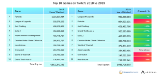 League of Legends, 929'dan 990 milyona görüşlerde büyüyen Fortnite'den en iyi Twitch yerini aldı, Fortnite 1.2 milyardan 884 milyona düştü. Bu, Teamfight Taktiklerini izleyen ve Riot'un çekirdek oyunuyla ilgilenen yaklaşık 159 milyon insanın crossover artışıyla yardımcı oluyor.