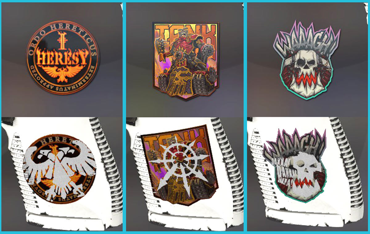 Kapsülden sonraki üç çıkartmada Warhammer 40K'nın meşhur Engizisyonu, Kaos Uzay Denizcileri ve elbette Orklar için logolar yer alıyor. Oyuncular "Heresy" çıkartmalarını kazıyarak Warhammer evreninin ölümsüz Tanrı-İmparatorunun sembolü olan İmparatorluk Aquilia'yı ortaya çıkarabilirler. "Tank" kazıma Kaos yedi puan ve Orc "WAAAAGH!" çıkartması hem Ork sembolünü hem de Warhammer lore'deki "Dakka, Dakka, Dakka" daki meşhur silahlarının sesini açığa çıkarıyor.