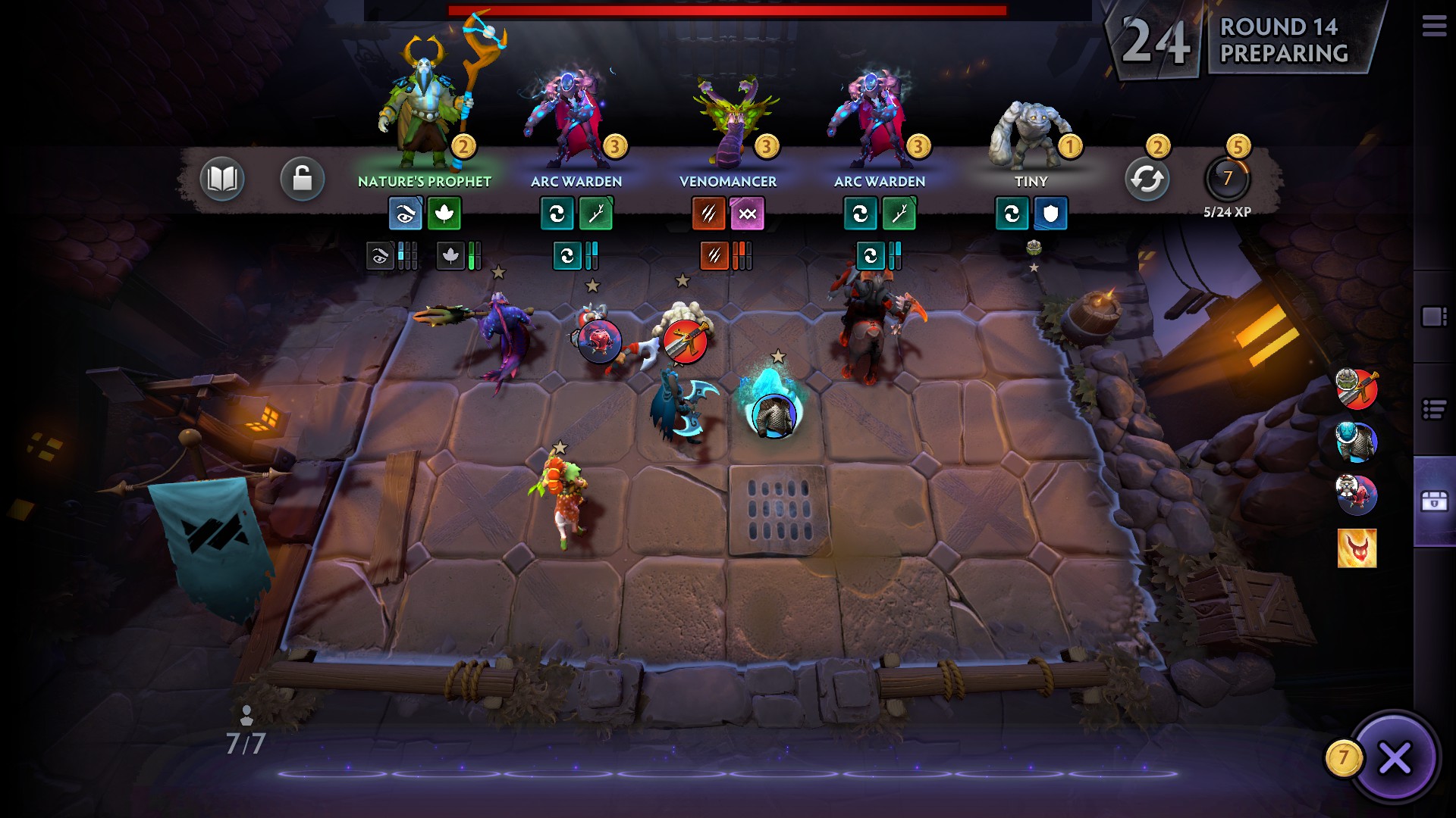 Aynı zamanda maksimum seviye on seviyeye ulaşmanızı sağlayan (her oyunu sıfırlayan) bir oyuncu seviyesi sistemi vardır ve her seviye oyun masasına bir kahraman daha eklemenizi sağlar. Maçları kazanarak ya da biraz ilerlemek için Altın harcayarak XP kazanırsınız.