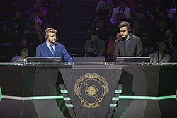 The main medium for esports coverage is the Internet. In the mid-2010s, mainstream sports and news reporting websites, such as ESPN, Yahoo!, Sport1, Kicker, ve Aftonbladet started dedicated esports coverage.[179][180] esports tournaments commonly use commentators or casters to provide live commentary of games in progress, similar to a traditional sports commentator. For popular casters, providing commentary for esports can be a full-time position by itself.[181] Prominent casters for StarCraft II include Dan "Artosis" Stemkoski and Nick "Tasteless" Plott.