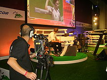 Die amerikanische Major League Gaming hat bekannt gegeben, dass 85 % ihrer Zuschauer männlich und 60 % der Zuschauer zwischen 18 und 34 Jahre alt sind.[111] Die TV-Berichterstattung hatte in Südkorea einen großen Anteil am Erfolg im E-Sport. Das zur CJ Group gehörende Orion Network Media (ON Media) strahlte 1997 mit Prediction 98 Cyber France World Cup auf dem Fernsehsender Tooniverse erstmals eine Begegnung in FIFA 98.[34] In Südkorea gibt es mit GOMTV, OnGameNet, MBCGame und GameTV drei Fernsehkanäle, die ausschließlich über Videospiele und E-Sport berichten. Erfolgreiche Spieler genießen in Südkorea einen ähnlichen Stellenwert wie Popstars. In den USA wurde die mittlerweile eingestellte Championship Gaming Series vom amerikanischen Fernsehsender DirecTV übertragen. In der Zielgruppe Männer zwischen 18 und 24 Jahren verfolgen in den Vereinigten Staaten mehr Zuschauer das Finale des Major League Gaming Championship als den Rose Bowl.[112] In Japan wird seit April 2014 die Sendung eSportsMaX (jap. eスポーツMaX) auf dem Fernsehsender Tokyo MX wöchentlich ausgestrahlt.[113]